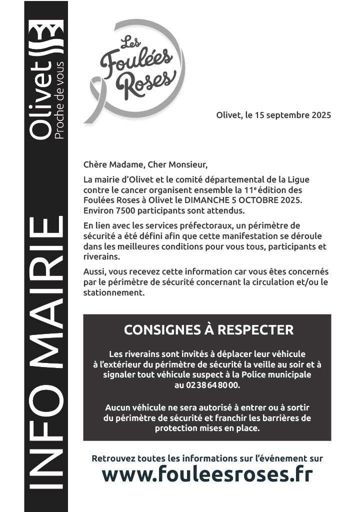 Retrouvez l’info riverains avec consignes à respecter lors du 5 octobre.